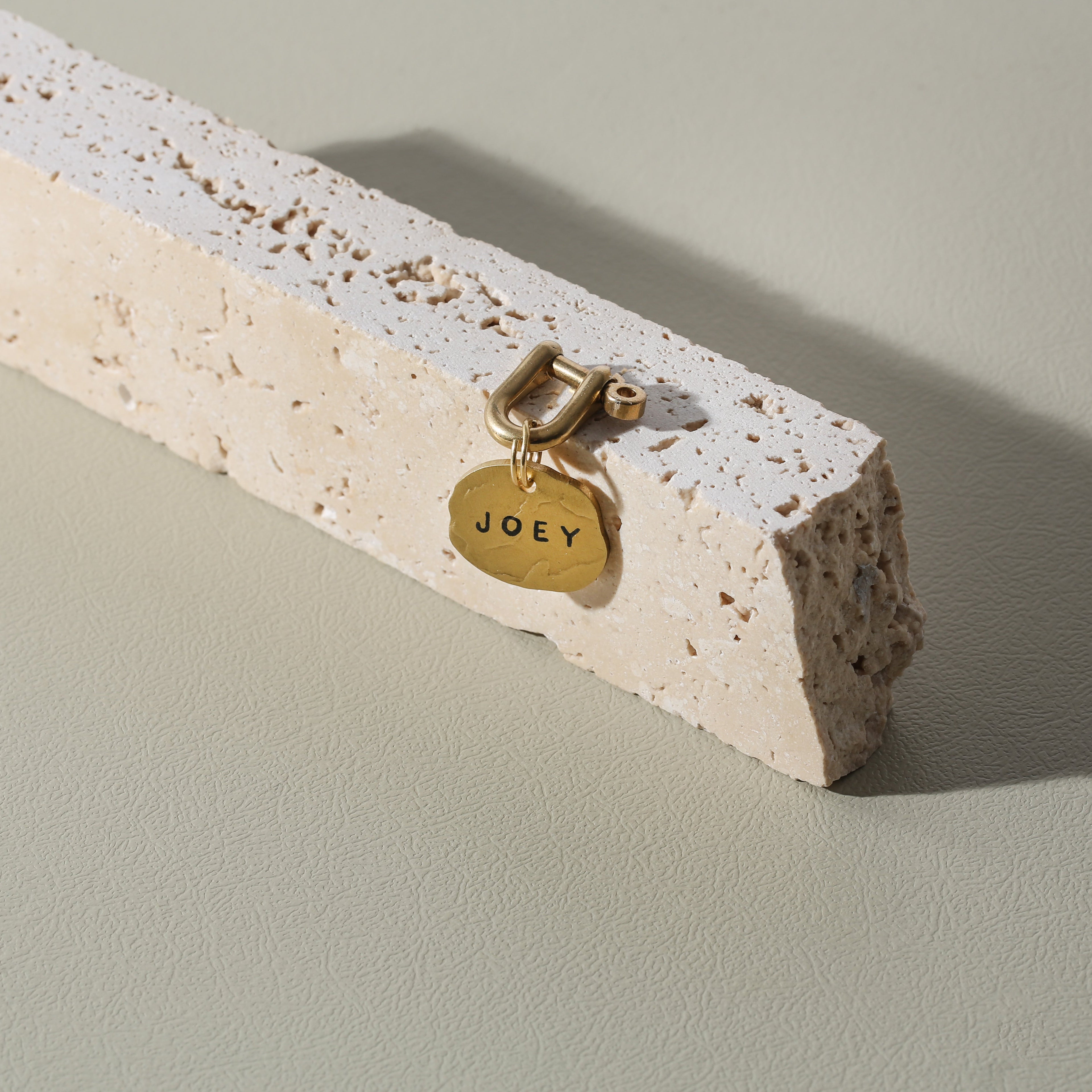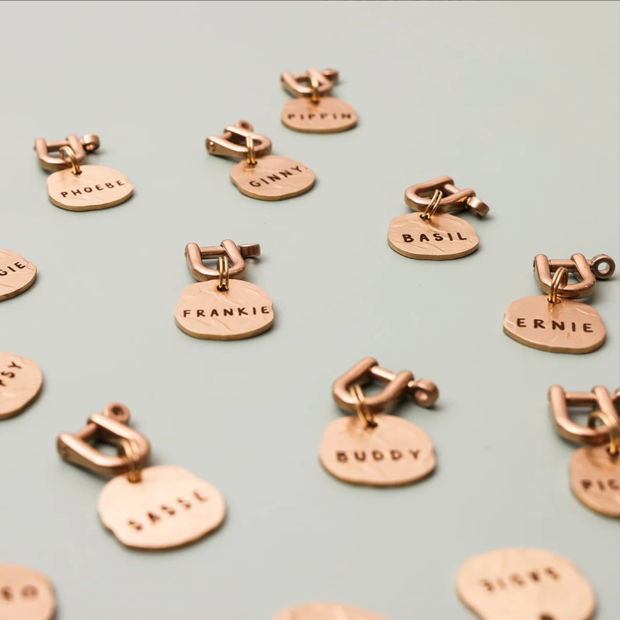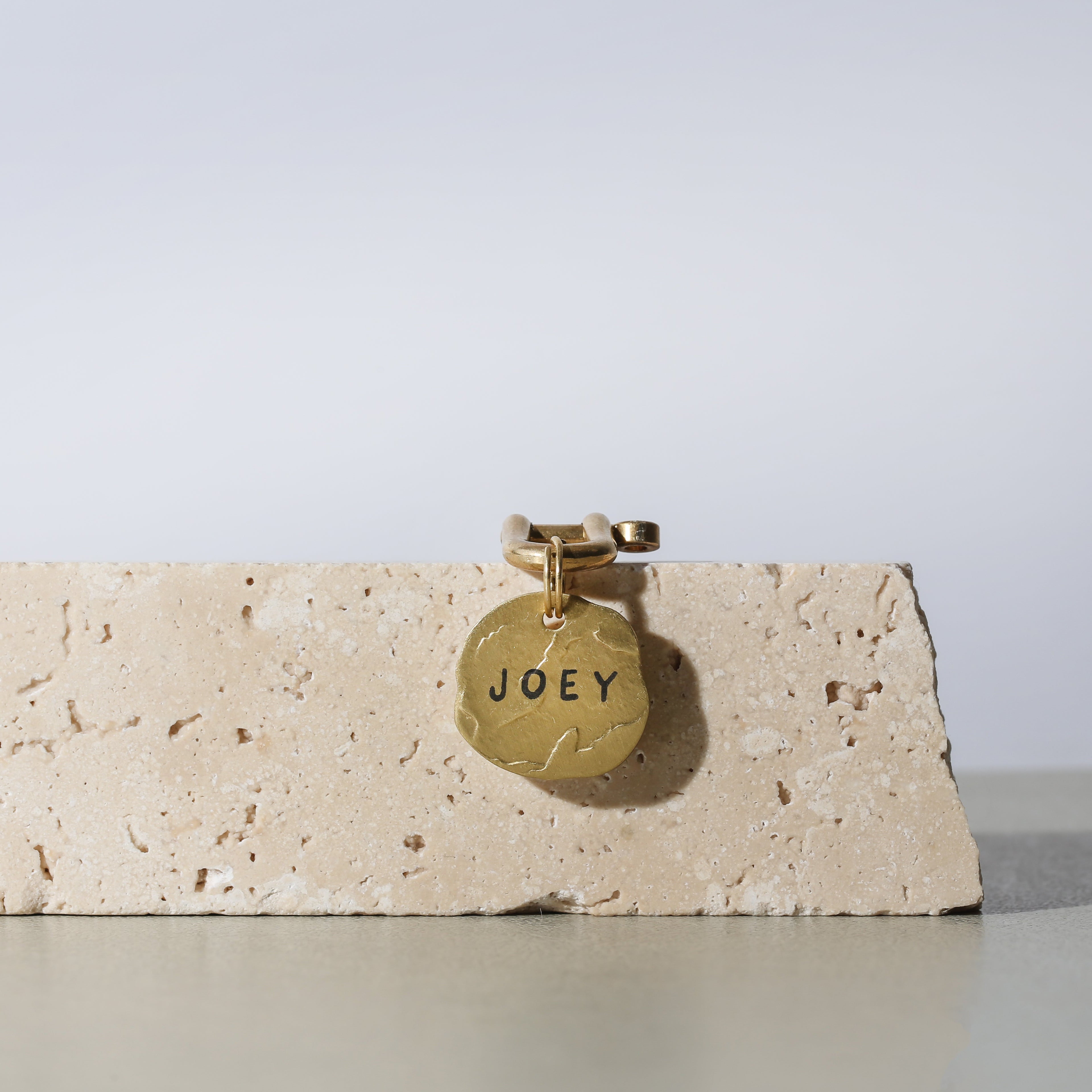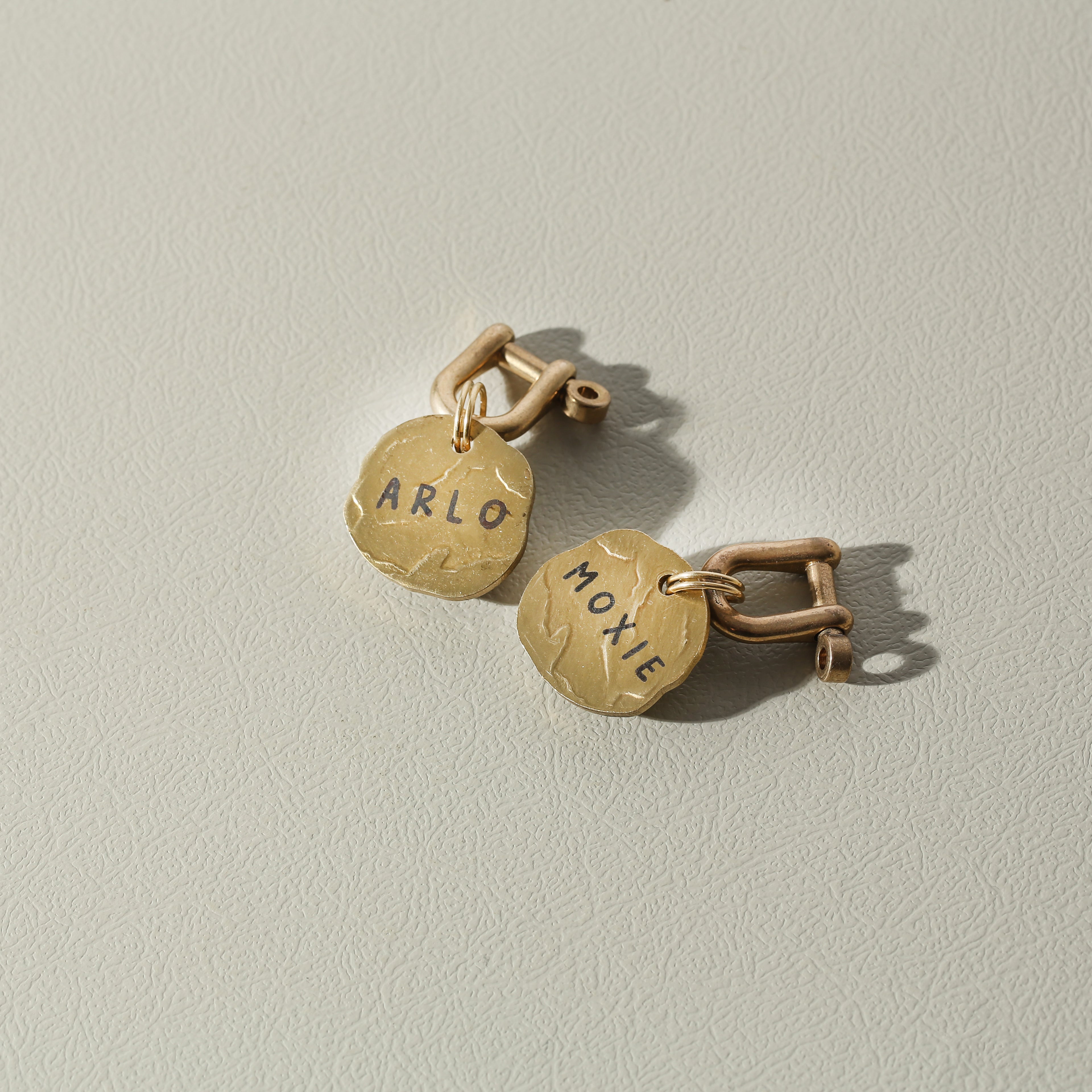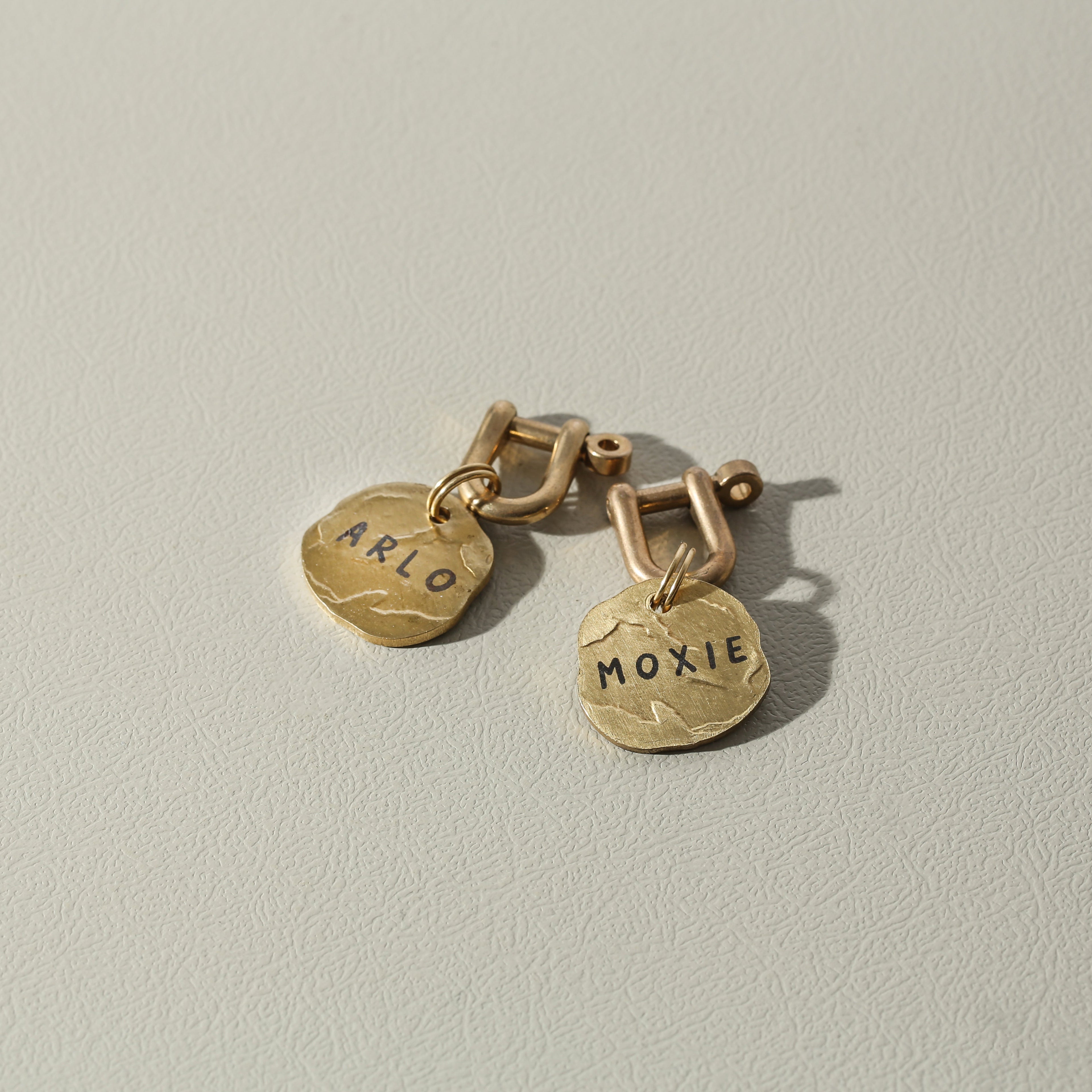 Materials: The Brass Collection uses solid, unfinished brass for a classic look and feel. It will naturally patina over time giving each tag it’s own unique character.