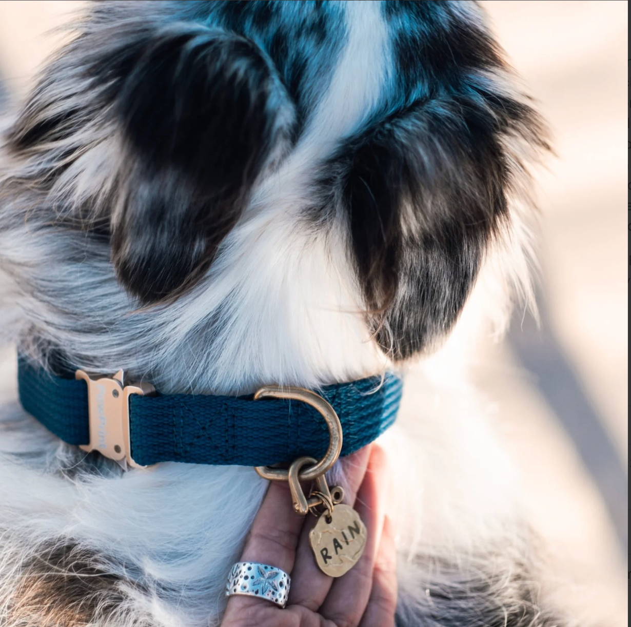 That’s my name, don’t wear it out!” Our dog tags are built from 100% recyclable, maritime grade brass. Why, you ask? Not just because brass is a beautiful metal, but also because it’s one of the most durable in harsh environments since it won’t RUST like other metals. Each tag comes with a naturally moulded brass tag, a high quality brass split ring and a stylish U-shackle, ensuring your tag is front-facing, providing your dog with one of the grooviest looking necks around. The perfect combination of utility, sustainability and style, we think...